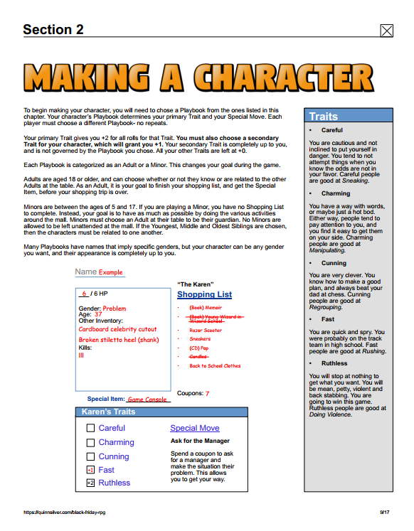A nostalgic satire game about doing your Christmas shopping. Fight your way through the crowds in your local mall on Black Friday. Try to complete your shopping list. Betray each other. 4+ players.